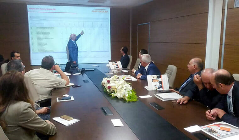 Yüksek Fen Kurulu ve Çevre ve Şehircilik Bakanlığı nezdinde görüşme ve incelemelerde bulunan Azerbaycan resmi heyetine Türkiye’de uygulanan Birim Fiyat Sistemi, AMP Yazılım’ın bu konu için özel olarak geliştirilmiş Birim Fiyat Otomasyonu sistemi AMP Yazılım Genel Müdür Yardımcısı, İnş.Müh. Erim Hamdi Dilmen tarafından anlatıldı. Toplantıda sistemin Azerbaycan’da uygulanabilirliği tartışıldı. Azerbaycan heyetinin beğenilerini ifade ettiği sistem için görüşmeler devam edecek.