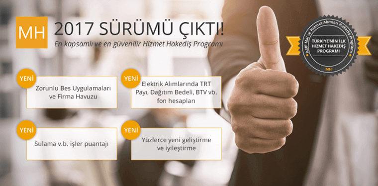 Türkiye’nin en kapsamlı ve en güvenilir Hizmet Hakediş Programı MH’ın 2017 sürümü hazır