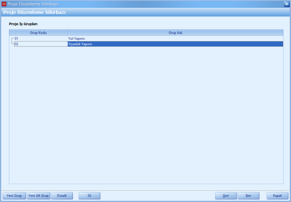 Teklif birim fiyatlı kısımda kullanacağınız iş gruplarını programa tanımlayın. İstediğiniz seviyede alt iş grubu oluşturabilir, istediğiniz kadar iş grubu ekleyebilirsiniz.