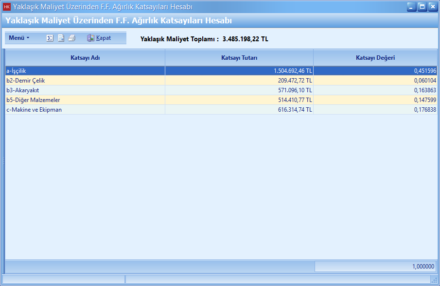 Ana ekrandaki, yaklaşık maliyet menüsünden tekrar Yaklaşık Maliyet düğmesine basın.